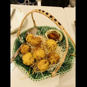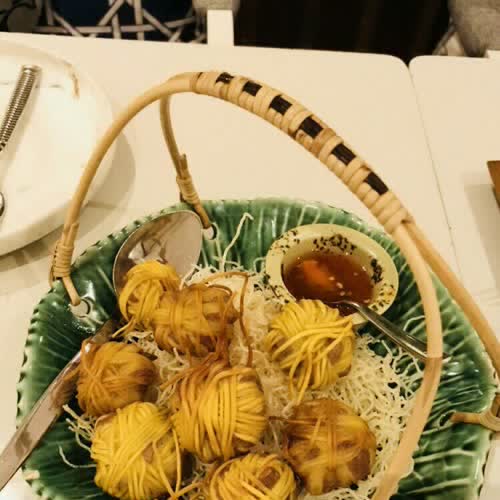 | คำอธิบาย : หมู่โสร่ง เป็นอาหารว่างไทยโบราณ โดยนำหมูบดปรุงรสด้วยรากผักชี กระเทียม พริกไทย ปั้นเป็นก้อนกลม แล้วนำเส้นหมี่ซั่ว สีขาว แช่น้ำพอเส้นนุ่ม ใช้หมี่ซั่ว 2 เส้นพันรอบหมูก้อน นำไปทอดพอเหลือง รับประทานกับน้ำจิ้ม |