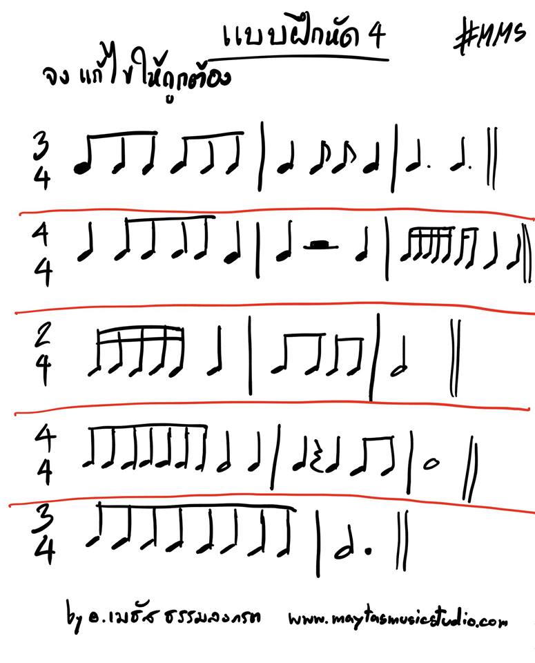 "แบบฝึดหัดที่ 4 จงแก้ไขโน้ตให้ถูกต้อง".