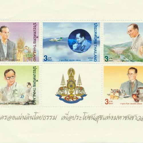 แสตมป์ชุด เราจะครองแผ่นดินโดยธรรม เพื่อประโยชน์สุขแห่งมหาชนชาวสยาม ได้รับใบอนุญาตภายใต้ ให้เผยแพร่-โดยต้องระบุที่มาแต่ห้ามดัดแปลงและห้ามใช้เพื่อการค้า 3.0 Thailand.