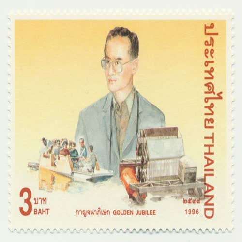 กาญจนาภิเษก แสตมป์ชุด งานฉลองสิริราชสมบัติ ครบ ๕๐ ปี ชุด ๔ ได้รับใบอนุญาตภายใต้ ให้เผยแพร่-โดยต้องระบุที่มาแต่ห้ามดัดแปลงและห้ามใช้เพื่อการค้า 3.0 Thailand.