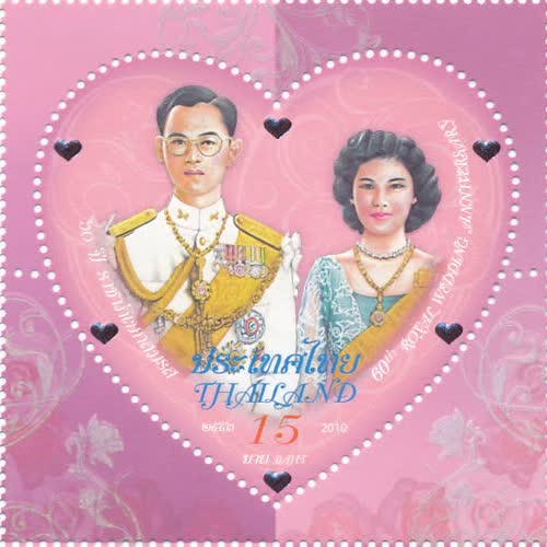 แสตมป์ ๖๐ ปี ราชาภิเษกสมรส ชุด ๑ ได้รับใบอนุญาตภายใต้ ให้เผยแพร่-โดยต้องระบุที่มาแต่ห้ามดัดแปลงและห้ามใช้เพื่อการค้า 3.0 Thailand.