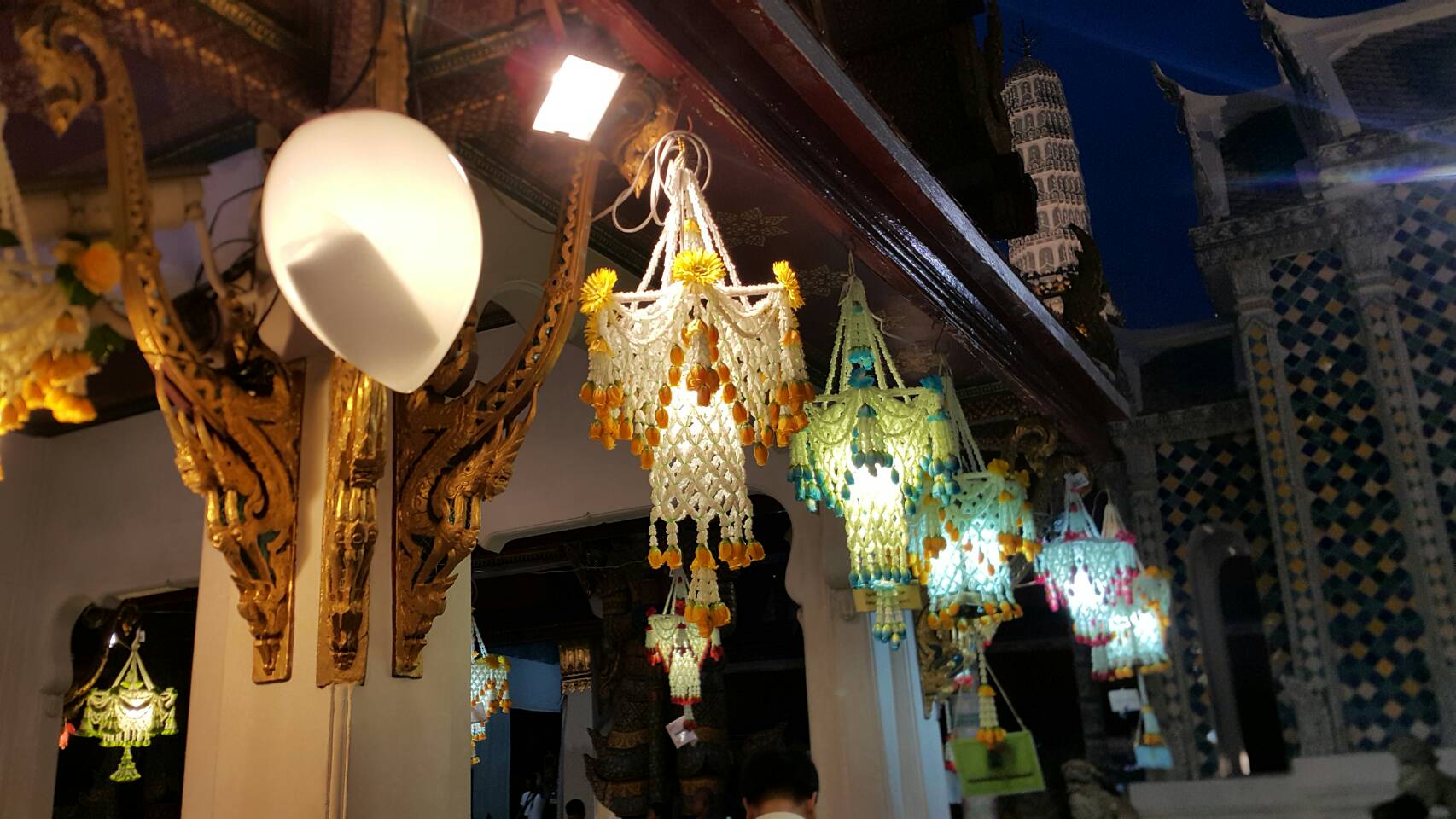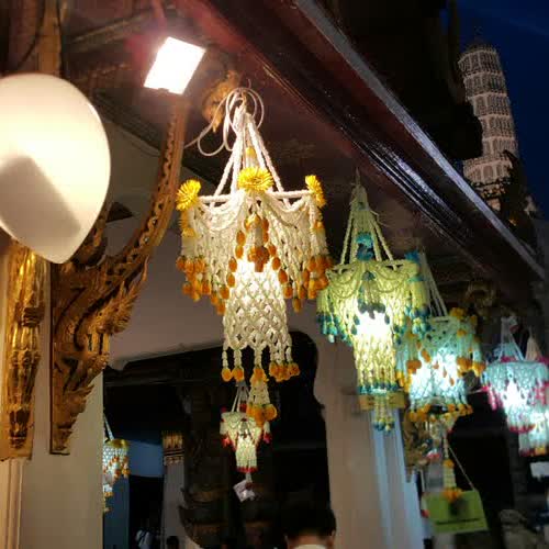 | คำอธิบาย : โคมประทีป ประดิษฐ์ขึ้นถวาย พระพุทธมหามณีรัตนปฏิมากร เพื่อเป็นพุทธบูชา เนื่องในวันวิสาขบูชา โดยคณะองคมนตรี นายกรัฐมนตรี ส่วนราชการ ห้างร้าน ณ บริเวณ ศาลาราย และระเบียงคต วัดพระศรีรัตนศาสดาราม ภายในพระบรมมหาราชวัง โคมประทีป มีทั้งประดิษฐ์จาก ดอกไม้สด ดอกไม้พลาสติก ดอกไม้ประดิษฐ์จากผ้า อบด้วยเครื่องหอม แป้งร่ำ และ โคมคริสตัล |