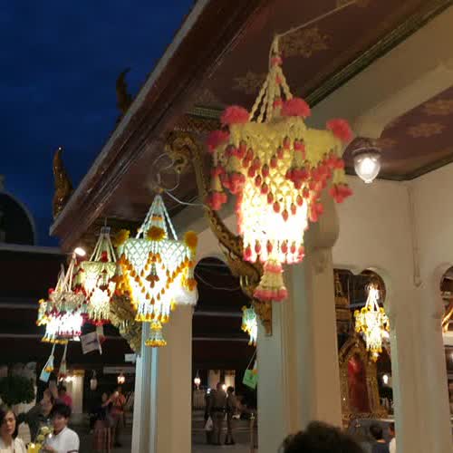 | คำอธิบาย : โคมประทีป ประดิษฐ์ขึ้นถวาย พระพุทธมหามณีรัตนปฏิมากร เพื่อเป็นพุทธบูชา เนื่องในวันวิสาขบูชา โดยคณะองคมนตรี นายกรัฐมนตรี ส่วนราชการ ห้างร้าน ณ บริเวณ ศาลาราย และระเบียงคต วัดพระศรีรัตนศาสดาราม ภายในพระบรมมหาราชวัง โคมประทีป มีทั้งประดิษฐ์จาก ดอกไม้สด ดอกไม้พลาสติก ดอกไม้ประดิษฐ์จากผ้า อบด้วยเครื่องหอม แป้งร่ำ และ โคมคริสตัล |