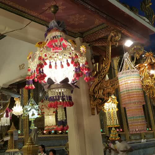 | คำอธิบาย : โคมประทีป ประดิษฐ์ขึ้นถวาย พระพุทธมหามณีรัตนปฏิมากร เพื่อเป็นพุทธบูชา เนื่องในวันวิสาขบูชา โดยคณะองคมนตรี นายกรัฐมนตรี ส่วนราชการ ห้างร้าน ณ บริเวณ ศาลาราย และระเบียงคต วัดพระศรีรัตนศาสดาราม ภายในพระบรมมหาราชวัง โคมประทีป มีทั้งประดิษฐ์จาก ดอกไม้สด ดอกไม้พลาสติก ดอกไม้ประดิษฐ์จากผ้า อบด้วยเครื่องหอม แป้งร่ำ และ โคมคริสตัล |