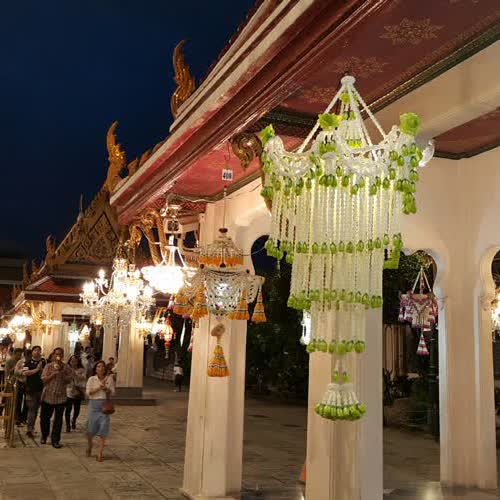 | คำอธิบาย : โคมประทีป ประดิษฐ์ขึ้นถวาย พระพุทธมหามณีรัตนปฏิมากร เพื่อเป็นพุทธบูชา เนื่องในวันวิสาขบูชา โดยคณะองคมนตรี นายกรัฐมนตรี ส่วนราชการ ห้างร้าน ณ บริเวณ ศาลาราย และระเบียงคต วัดพระศรีรัตนศาสดาราม ภายในพระบรมมหาราชวัง โคมประทีป มีทั้งประดิษฐ์จาก ดอกไม้สด ดอกไม้พลาสติก ดอกไม้ประดิษฐ์จากผ้า อบด้วยเครื่องหอม แป้งร่ำ และ โคมคริสตัล |