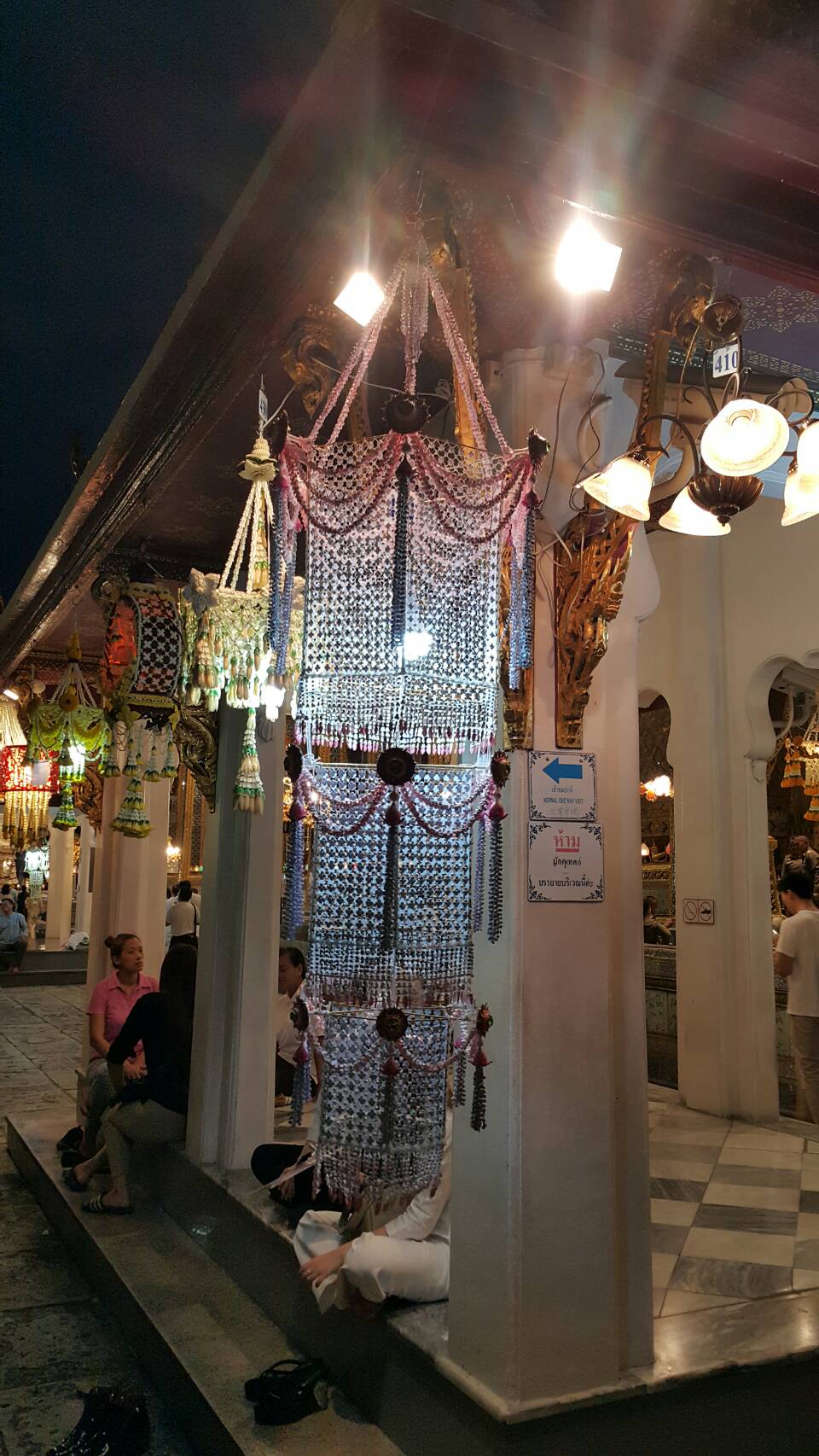 | คำอธิบาย : โคมประทีป ประดิษฐ์ขึ้นถวาย พระพุทธมหามณีรัตนปฏิมากร เพื่อเป็นพุทธบูชา เนื่องในวันวิสาขบูชา โดยคณะองคมนตรี นายกรัฐมนตรี ส่วนราชการ ห้างร้าน ณ บริเวณ ศาลาราย และระเบียงคต วัดพระศรีรัตนศาสดาราม ภายในพระบรมมหาราชวัง โคมประทีป มีทั้งประดิษฐ์จาก ดอกไม้สด ดอกไม้พลาสติก ดอกไม้ประดิษฐ์จากผ้า อบด้วยเครื่องหอม แป้งร่ำ และ โคมคริสตัล |