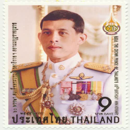แสตมป์ ๖๐ พรรษา สมเด็จพระบรมโอรสาธิราชฯ สยามมกุฏราชกุมาร ได้รับใบอนุญาตภายใต้ ให้เผยแพร่-โดยต้องระบุที่มาแต่ห้ามดัดแปลงและห้ามใช้เพื่อการค้า 3.0 Thailand.