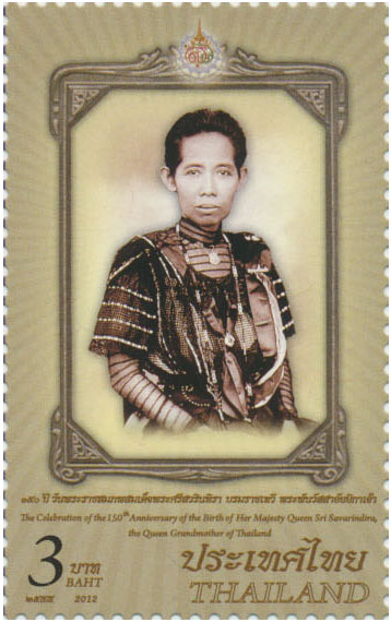 แสตมป์ชุด ๑๕๐ ปี วันพระราชสมภพ สมเด็จพระศรีสวรินทรา บรมราชเทวี พระพันวัสสาอัยยิกาเจ้า (ชุด ๓) ได้รับใบอนุญาตภายใต้ ให้เผยแพร่-โดยต้องระบุที่มาแต่ห้ามดัดแปลงและห้ามใช้เพื่อการค้า 3.0 Thailand.