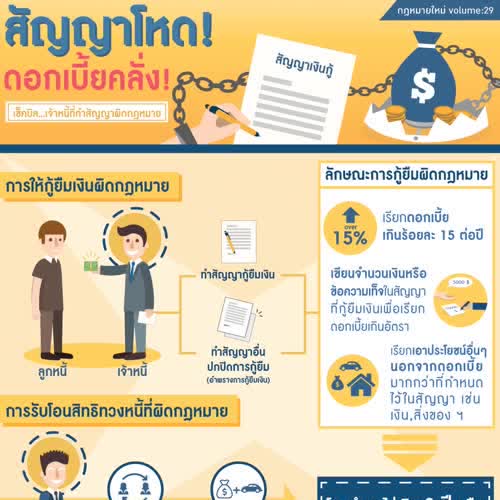 | คำสำคัญ : สัญญากู้ยืมเงิน, Infographic, การกู้ยืมเงิน, อินโฟกราฟิก, สัญญาโหด, หนี้นอกระบบ, ดอกเบี้ยคลั่ง |