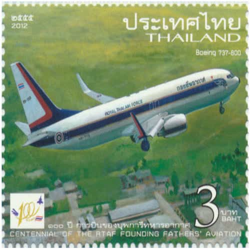 Boeing 737-800 แสตมป์ชุด ๑๐๐ ปี การบินของบุพการีทหารอากาศ (ชุด ๒) ได้รับใบอนุญาตภายใต้ ให้เผยแพร่-โดยต้องระบุที่มาแต่ห้ามดัดแปลงและห้ามใช้เพื่อการค้า 3.0 Thailand.