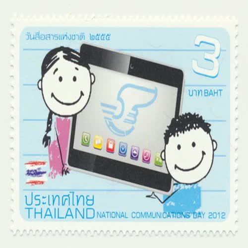 แสตมป์ วันสื่อสารแห่งชาคิ ๒๕๕๕ ได้รับใบอนุญาตภายใต้ ให้เผยแพร่-โดยต้องระบุที่มาแต่ห้ามดัดแปลงและห้ามใช้เพื่อการค้า 3.0 Thailand.