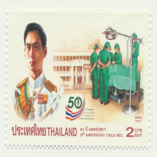 แสตมป์ ๕๐ ปี ตณะแพทยศาสตร์จุฬาลงกรณ์มหาวิทยาลัย ได้รับใบอนุญาตภายใต้ ให้เผยแพร่-โดยต้องระบุที่มาแต่ห้ามดัดแปลงและห้ามใช้เพื่อการค้า 3.0 Thailand.