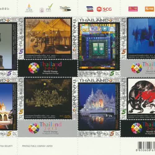 แสตมป์ชุด งานแสดงตราไปรษณียากรโลก พ.ศ. ๒๕๕๖ (ชุด ๓) ได้รับใบอนุญาตภายใต้ ให้เผยแพร่-โดยต้องระบุที่มาแต่ห้ามดัดแปลงและห้ามใช้เพื่อการค้า 3.0 Thailand.