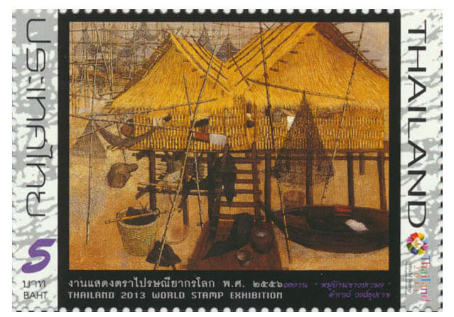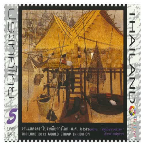 ผลงาน หมู่บ้านชาวประมง ดำรงค์ วงศ์อุปราช แสตมป์ชุด งานแสดงตราไปรษณียากรโลก พ.ศ. ๒๕๕๖ (ชุด ๓)