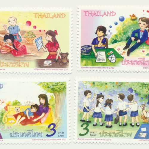 แสตมป์ชุด สัปดาห์สากลแห่งการเขียนจดหมาย ๒๕๕๕ ได้รับใบอนุญาตภายใต้ ให้เผยแพร่-โดยต้องระบุที่มาแต่ห้ามดัดแปลงและห้ามใช้เพื่อการค้า 3.0 Thailand.