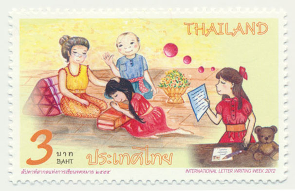 แสตมป์ชุด สัปดาห์สากลแห่งการเขียนจดหมาย ๒๕๕๕ ได้รับใบอนุญาตภายใต้ ให้เผยแพร่-โดยต้องระบุที่มาแต่ห้ามดัดแปลงและห้ามใช้เพื่อการค้า 3.0 Thailand.