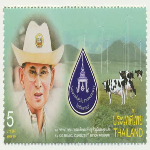 แสตมป์ วันเฉลิมพระชนมพรรษา พระบาทสมเด็จพระเจ้าอยู่หัวภูมิพลอดุลยเดช ได้รับใบอนุญาตภายใต้ ให้เผยแพร่-โดยต้องระบุที่มาแต่ห้ามดัดแปลงและห้ามใช้เพื่อการค้า 3.0 Thailand.