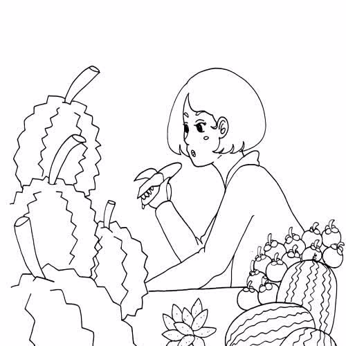 คำสำคัญ : ภาพลายเส้น, ภาพวาด, สื่อเรียนรู้, ภาพประกอบการสอน, เทศกาลผลไม้ของดีเมืองระยอง |