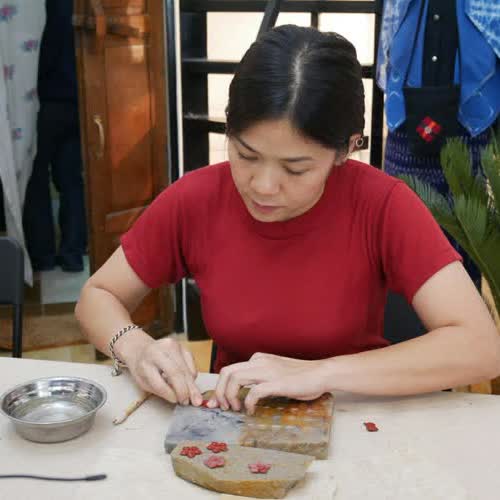 | คำสำคัญ : หินสบู่, ศิลปะวัฒนธรรมไทย, แม่พิมพ์, ตีลาย, แกะสลัก, ช่างสิบหมู่, งานช่างศิลป์ไทย |