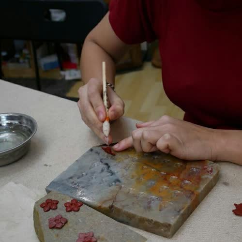 | คำสำคัญ : ดึงลาย, กระแหนะลาย, หินสบู่, งานช่างศิลป์ไทย, ศิลปะวัฒนธรรมไทย, แม่พิมพ์, แกะสลัก, ช่างสิบหมู่, เข็ม |