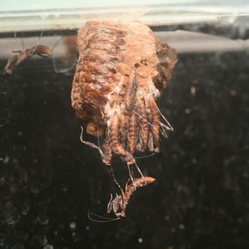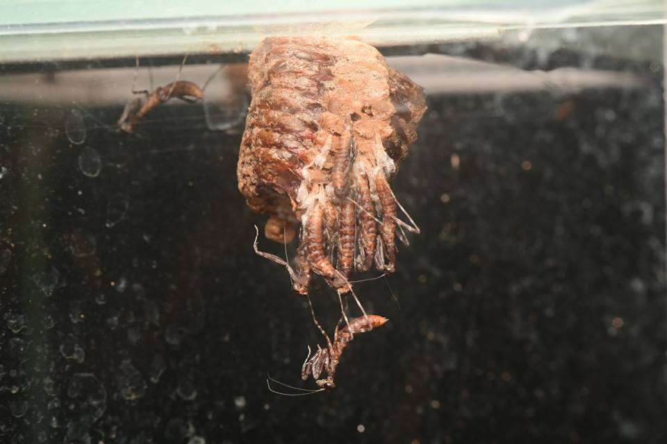 | คำอธิบาย : หลังจากรอคอยมาราวๆ70วัน ลูกๆ #ตั๊กแตนตำข้าวใบไม้แห้ง D.dessicata ก็ทยอยฟักออกมาจากไข่อย่างพร้อมเพรียง ตัวอ่อนจะค่อยๆมุดออกมาจากฝักไข่ทิ้งตัวลงมาด้านล่างก่อนที่จะขยับขาและเกาะเดินไปตามกิ่งไม้และขอบตู้ ให้เวลาพักตัวประมาณ 1 วัน จึงเริ่มป้อนอาหารด้วยลูกจิ้งหรีดหรือแมลงหวี่ต่อไป |