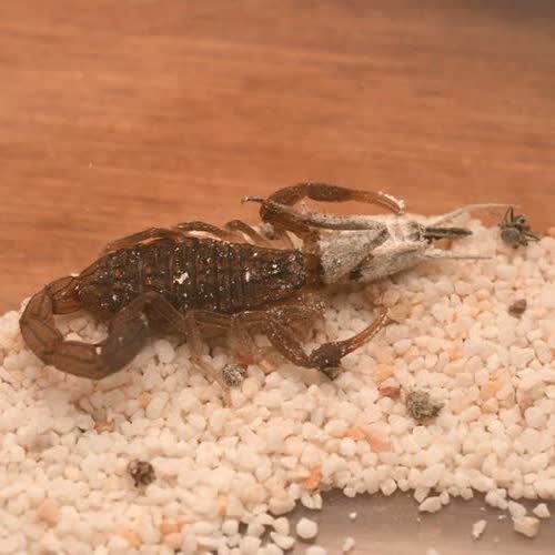 | คำอธิบาย : แมงป่อง Hottentotta ตัวเล็กๆ แต่มีพิษสงร้ายแรง สามารถใช้พิษที่มีความรุนแรงหยุดชะงักเหยื่อให้แน่นิ่งไปได้ก่อนที่จะทำการเคี้ยวกินเป็นอาหารลงไปทั้งตัว ทำให้อิ่มไปได้อีกหลายวัน |