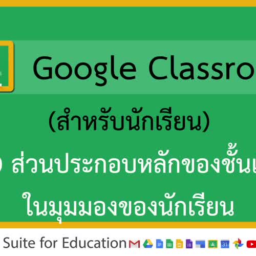 | คำอธิบาย : วิดีโอแสดงส่วนประกอบหลักของชั้นเรียนในมุมมองของนักเรียนใน Google Classroom |
