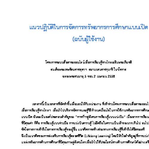 | ชื่อเรื่อง : แนวปฏิบัติในการจัดการทรัพยากรการศึกษาแบบเปิด (ฉบับผู้ใช้งาน) |
